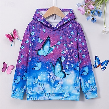 Chica 3D Graphic Mariposa Sudadera Manga Larga Primavera Otoño Moda Ropa de calle Niños 4-12 años Con Capucha Exterior Casual Diario Ajuste regular