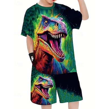 Chico 3D Dinosaurio Camiseta y Bermudas Conjunto Manga Corta Verano Primavera Deportes Moda Diario Niños 4-12 años Cuello Barco Exterior Vacaciones Deportes A Medida