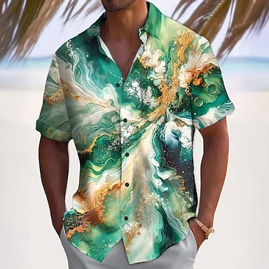 Hombre Geométrico Mármol Arte líquido abstracto Camisa Camisa de verano Abotonar la camisa Manga Corta Moda informal Exterior Vacaciones Uso Diario Verano Primavera Cuello Vuelto Impresión 3D camisas