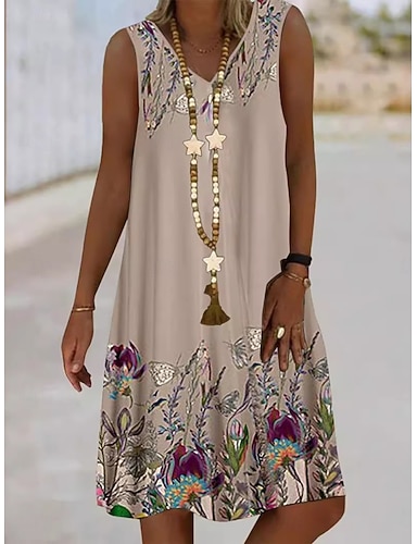 Mujer Vestido Midi Vestido informal Vestido de flores Vestido lencero Elegante Moda Moderno Exterior Vacaciones Noche Ajuste regular Floral Sin Mangas Escote en Pico Rosa Verano Primavera