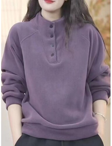 Mujer Sudadera Botones Plano Casual Manga Larga Cuello Alto Tops regulares Calle Uso Diario Negro Blanco Rojo Morado Verde Trébol Otoño Invierno