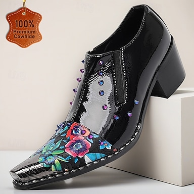 Mocasines de piel negra para hombre con bordado floral: calzado de primera calidad para bodas y cenas formales.
