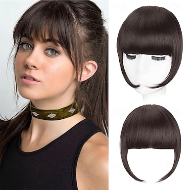 Flequillo con clip, flequillo falso castaño medio francés, flequillo con clip para mujer, flequillo con patillas, postizos, flequillo falso para uso diario.