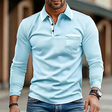 Hombre Camiseta de golf Camisetas polo de golf Trabajo Casual Diseño Manga Larga Básico Moderno Bloque de color Bolsillo Botones Primavera Otoño Ajuste regular Negro Blanco Azul Marino Azul cielo