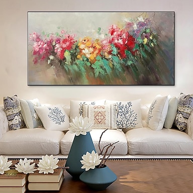 Pintura al óleo hecha a mano, lienzo, decoración de arte de la pared, paisaje de flores abstracto moderno para sala de estar, decoración del hogar, pintura enrollada sin marco y sin estirar