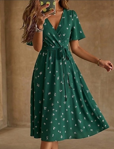 Mujer Vestido hasta la Rodilla Vestido bohemio Vestido de Camisa Vestido informal Vestido de flores Elegante Moda Moderno Exterior Vacaciones Noche Ajuste regular Floral Manga Corta Escote en Pico