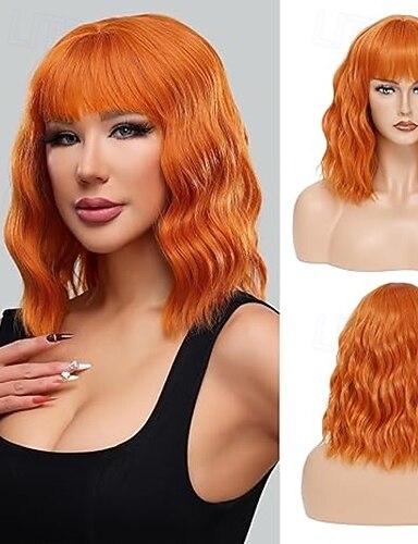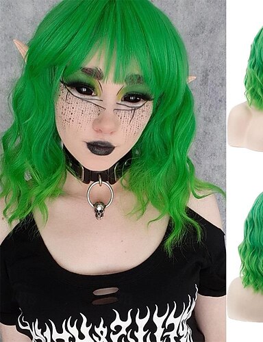 Pelucas de cabello sintético para cosplay, de 14 pulgadas (35 cm), estilo bob, corto, rizado y ondulado, para fiestas de Halloween y cosplay.