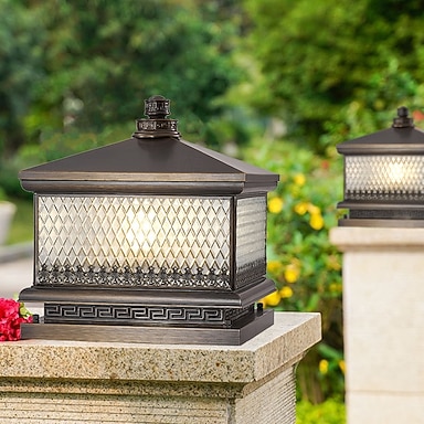 Lámpara de poste moderna, luces de camino de paisaje impermeables, lámpara de tapa de poste de cerca de cubierta e27 con pantalla acrílica, lámpara de pilar de hoja galvanizada cuadrada 110-240v