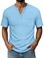 Hombre Camiseta superior Camiseta de lino Manga Corta Mangas cortas Escote en Pico Verano Plano Moda Design Básico Suave Puro Casual Vacaciones Calle Azul Piscina Negro Blanco Camiseta superior para