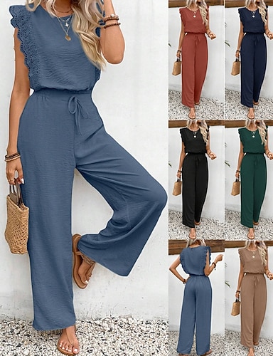 Mujer Camisola Pantalones de pierna ancha Sin Mangas Con Tirantes Floral Bloque de color Estampado Moda Ropa de calle Diario Casual Diario Azul Piscina Beige Verano Ajuste regular