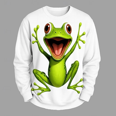 Hombre 3D Rana Sudadera Moda Exagerado Diario Casual Manga Larga Cuello Barco Vacaciones Fiesta Regalo Negro Blanco Cuello redondo 3D Todas las Temporadas Diseñador S M L XL XXL XXXL