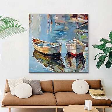 Pintura al óleo hecha a mano, lienzo, arte de pared, decoración, moderno, abstracto, navegación, pequeño barco para decoración del hogar, marco estirado, pintura colgante/lienzo enrollado (sin marco)