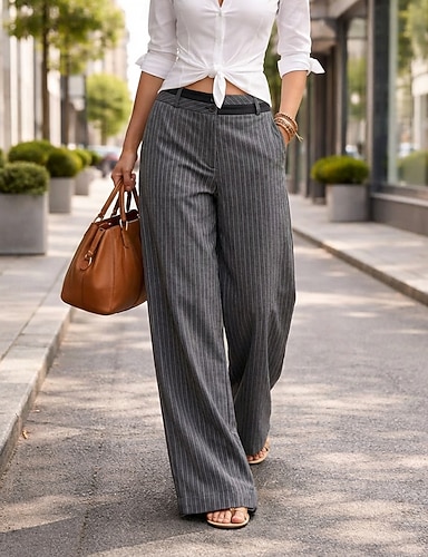 Mujer Perneras anchas pantalones de traje Chinos Pantalones de verano Elegante Vintage Moda Longitud total Baja cintura A Rayas Comodidad Microelástico Casual Diario Ropa de calle Gris Verano
