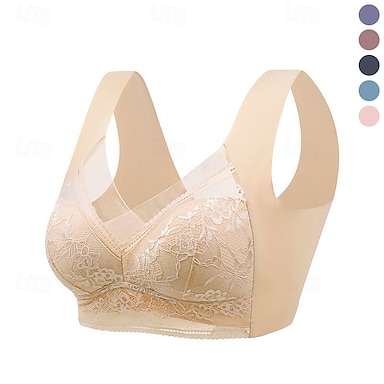 Sujetadores inalámbricos para mujer, tirantes fijos, cobertura total, escote en V, transpirables, color puro, cierre tipo pull, informales, para uso diario, nailon, 1 pieza, negro, rosa /
