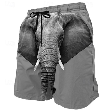 Hombre Animal Elefante Boxers de Natación Trajes de baño, bañadores cortos Pantalones de Surf Media cintura Hawaiano vacaciones en la playa Bolsillos laterales Forro de malla Cintura elástica con
