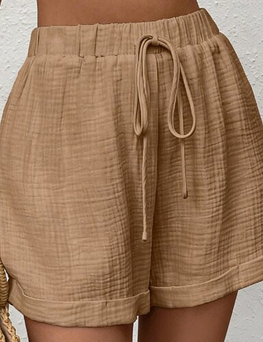 Mujer Pantalón corto Pantalones cortos de verano Pantalones cortos de playa Pantalones cortos de algodón Vacaciones Moda Básico Corto Alta cintura Color sólido Plano Retazos Perneras anchas Cintura