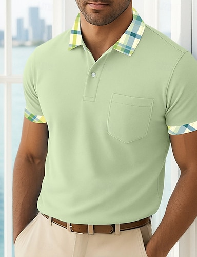 Hombre Camiseta de golf Camisetas polo piqué Negocio Casual Cuello polo acanalado Manga Corta Moda Básico Color sólido Plaid Botones Verano Primavera Primavera & Otoño Ajuste regular Verde Claro