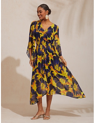 Vestido largo de gasa con estampado floral abstracto para mujer, tejido fluido y transparente, ideal para bodas, vacaciones, playa, resort, primavera, verano y otoño.