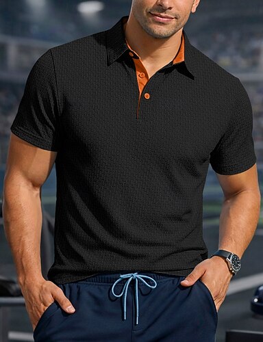 Hombre Con Texturas Polo de punto gofre Casual Negocio Clásico Manga Corta Moda Moderno Color sólido Secado rápido Botones Verano Primavera Ajuste regular Azul Piscina Negro Blanco Azul Marino Verde