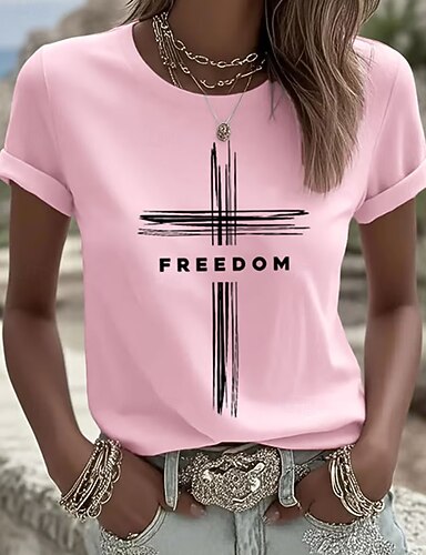 Día de la Independencia Aniversario Americano Patriótico Camiseta de Mujer Gráfica Letras Bandera Vintage Elegante Casual de Manga Corta Cuello Redondo Diaria Fin de Semana Impresión Azul Rosa Roja