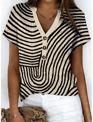 Mujer Camiseta Estampado Graphic Geométrico Vintage Elegante Clásico Manga Corta Escote en Pico Cuello con muescas. Tops regulares Diario Noche Fin de semana Azul Piscina Morado Verde Trébol Caqui