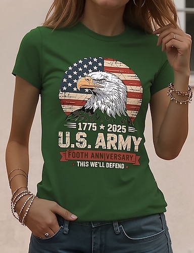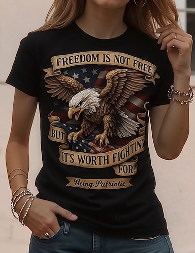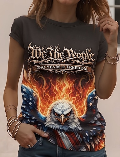 Camiseta Patriótica de Día de la Independencia para Mujeres Impresión Gráfica Bandera Americana Vintage Estilo Elegante Clásica Manga Corta Cuello Redondo Cuello Regular Tops Daily Weekend