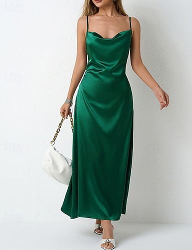Mujer vestido largo vestido largo Vestido de raso Vestido de Fiesta Vestido Cóctel Vestido lencero Moda Moderno Fiesta de Noche Fiesta Ocasión especial Ajuste regular Plano Sin Mangas Correa de