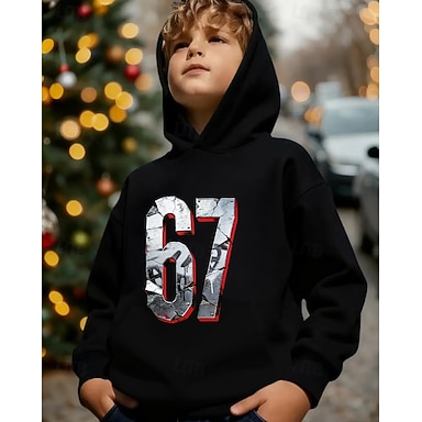 Unisexo Chico 3D Graphic Jerga divertida 67 Sudadera Pullover Manga Larga Impresión 3D Primavera Otoño Deportes Moda Ropa de calle Niños 4-12 años Con Capucha Exterior Casual Diario Ajuste regular