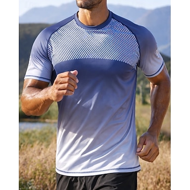 Hombre Degradado Camiseta Running Camiseta Compresión Camisa atlética Top deportivo Verano Manga Corta Secado rápido Dispersor de humedad Transpirable Entrenamiento de gimnasio Paseo Correr Azul