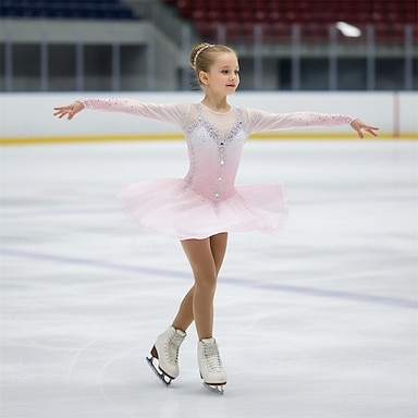 Vestido de patinaje artístico con gradiente de manga larga, traje de competición personalizado