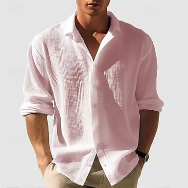 Hombre Camisa Camisa de gofres Camisa casual Abotonar la camisa Blanco Rosa Azul Piscina Color Caquí Gris Ligero Manga Larga Plano Diseño Diario Noche Puro Ropa Moda Moderno Casual Cómodo