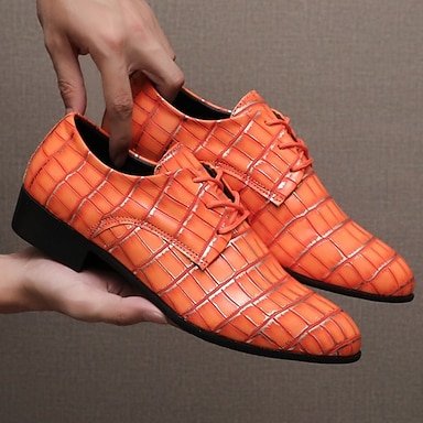 Zapatos de vestir de piel sintética con efecto cocodrilo naranja para hombre: calzado formal para negocios y bodas para caballeros modernos.