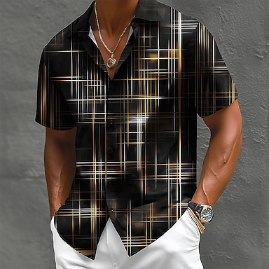 Hombre Camisa Conjunto de camisa Camisa casual Conjunto Negro Blanco Amarillo Rosa Azul Piscina Mangas cortas Plano Diseño Calle Vacaciones Básico Ropa Moda Ocio
