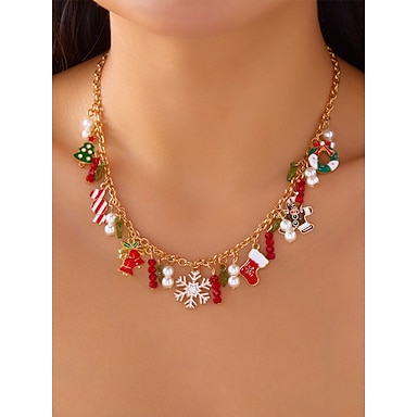 Collar con dije navideño para mujer, varios estilos con dijes de Papá Noel, muñeco de nieve y árbol de Navidad, perfecto para fiestas navideñas y regalos festivos.