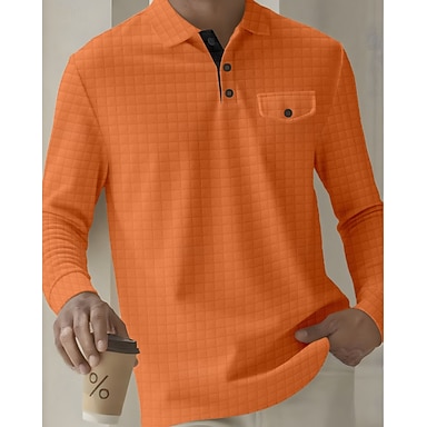 Hombre Camiseta de golf Camisetas polo de golf Trabajo Casual Diseño Manga Larga Básico Moderno Plano Jacquard Botones Primavera Otoño Ajuste regular Negro Blanco Azul Marino Naranja Gris Oscuro Gris