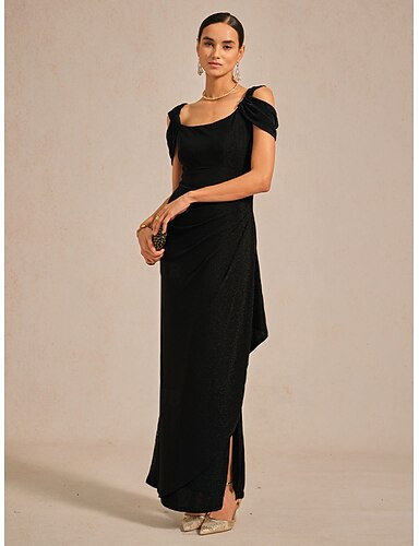 Vestido de fiesta tipo columna o vaina largo para bodas vestido de cóctel vestido para invitadas de boda vestido para madre de la novia de manga larga escote en V elegante formal de spandex con