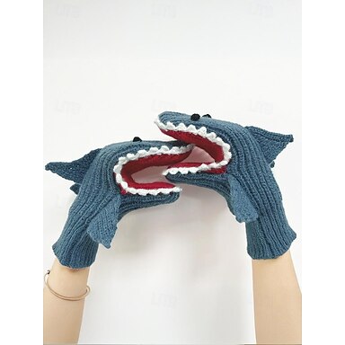 Guantes navideños para mujer con diseño de tiburón, divertidos y cómodos, el regalo perfecto para niños y adultos en estas fiestas.