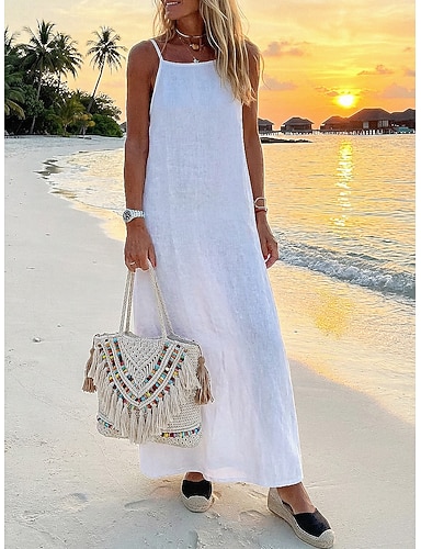 Mujer Vestido maxi Algodón Compuesto Vestido de cambio Vestido de verano Vestido informal Básico Casual Diario Vacaciones Ajuste regular Plano Sin Mangas Con Tirantes Negro Blanco Verde Ejército