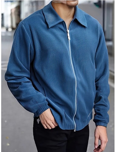 Hombre Chaqueta ligera Chaqueta de Pana Chaqueta casual Exterior Vacaciones Bolsillo Primavera Otoño Plano Ropa de calle Elegante Cuello Vuelto Regular Azul Piscina Chaquetas