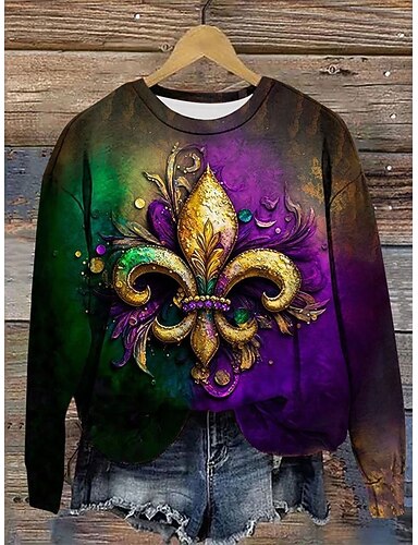 Sudadera con capucha de mujer Carnival gráfico abstracto casual de manga larga cuello redondo tops regulares ropa casual de calle impresión en azul púrpura verde otoño invierno