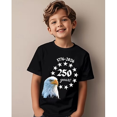 100% Algodón Niños Chico Negro Graphic Águila 250 aniversario Camiseta Blusa Cuello Barco Manga Corta Exterior Uso Diario Moda Ropa de calle Design Estampado Verano