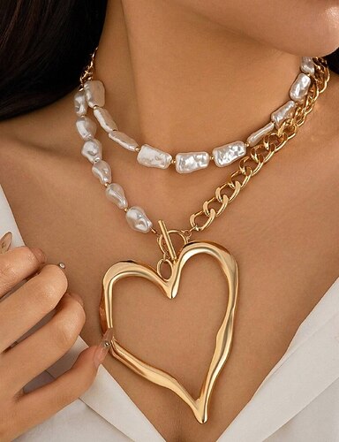 1 PC Collar For Mujer Perla Diario Calle Regalo Legierung Retazos Corazón Amor