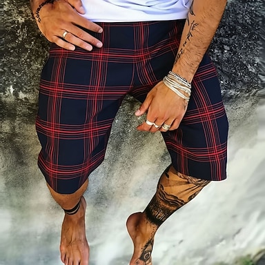 Hombre Geométrico Cuadrícula / Cuadros Pantalones cortos de sudor Pantalones cortos de playa Pantalones cortos de felpa Media cintura Moda informal Diario Ropa de calle Festivos Impresión 3D Cintura