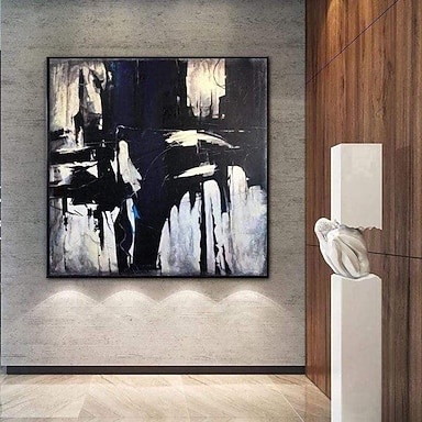 hecho a mano pintado a mano pintura al óleo arte de la pared lienzo abstracto de gran tamaño arte de la pared pintura en blanco y negro lienzo de arte negro pintura original sobre lienzo ciudad