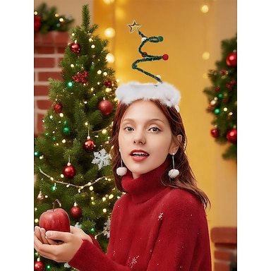 Diadema navideña para mujer con pompones y estrella en la parte superior, un divertido accesorio para el cabello para fiestas navideñas. &celebraciones festivas