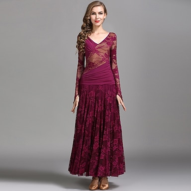 Baile de Salón Vestido Apliques Combinación Mujer Entrenamiento Rendimiento Manga Larga Cintura Media Gasa Encaje Terciopelo