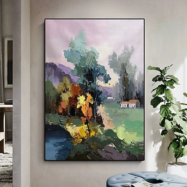 Pintura al óleo pintada a mano hecha a mano, pintura de paisaje abstracto moderno, pintura en lienzo, decoración del hogar, lienzo enrollado
