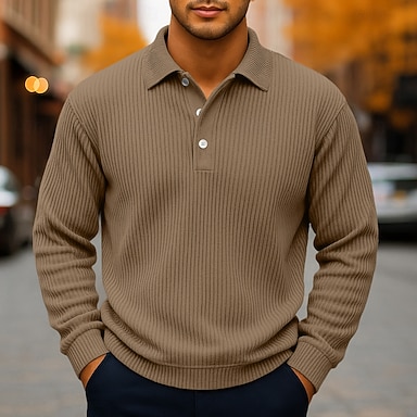Hombre Polo Camisa de Pana Casual Deportes Diseño Manga Larga Moda Básico Color sólido Con Texturas Botones Cálido Otoño Primavera & Otoño Ajuste regular Azul Azul Oscuro Gris Caqui Polo