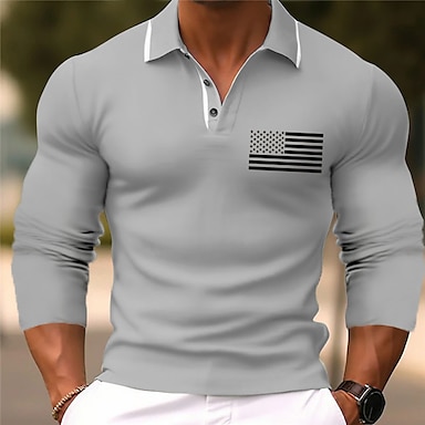 4 de julio de 2026, 250 aniversario Hombre Bandera estadounidense veteranos Camiseta de golf Manga Larga Camisas de polo Camisas con cuello Casual Ropa de vacaciones Trajes de fiesta Impresión 3D