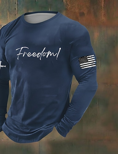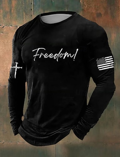4 de Julio 2026 250º Día de los Caídos Hombre Biblia Camiseta Impresión 3D Bandera Americana Cuello Redondo Manga Larga Casual Diaria Street